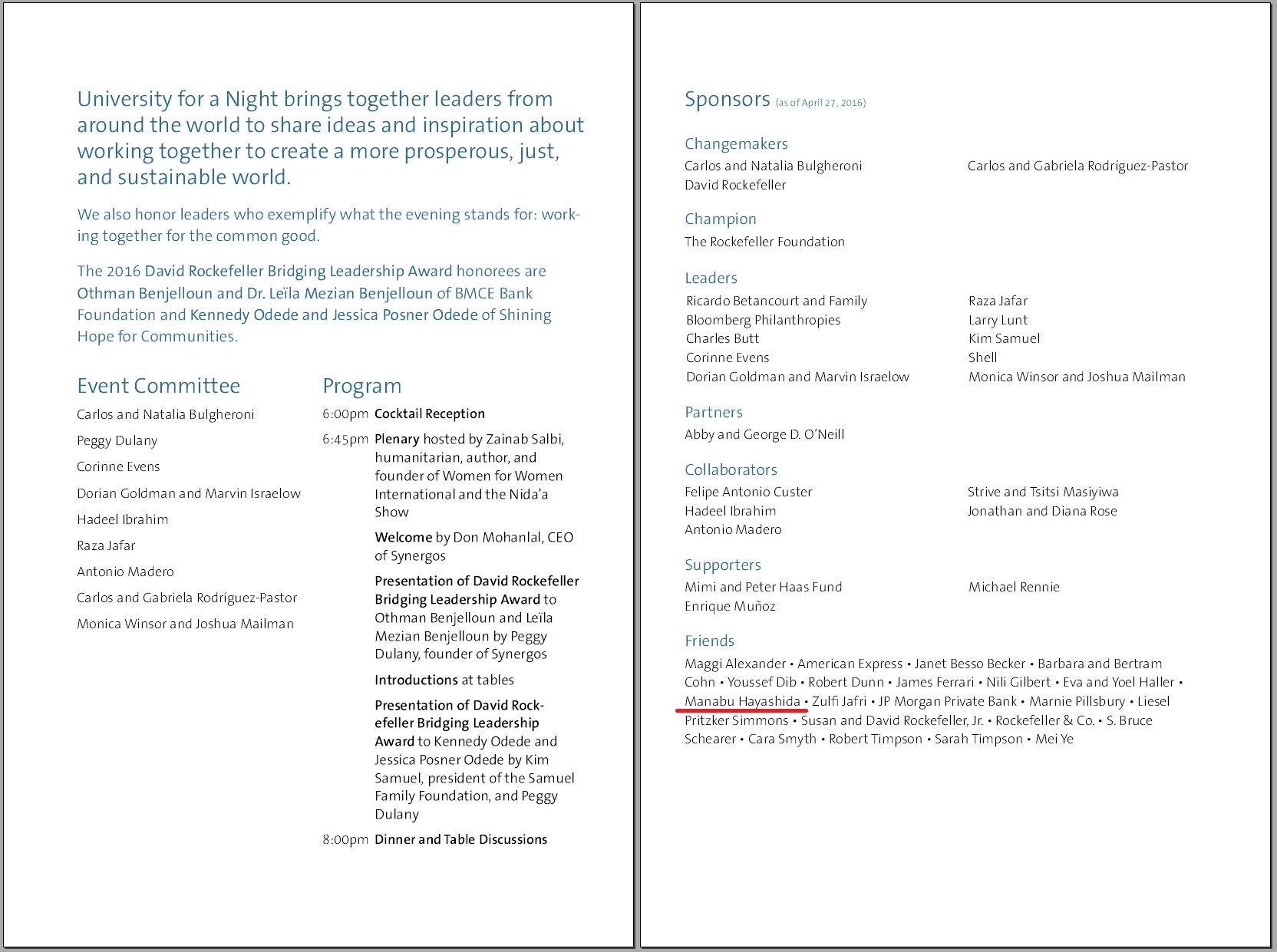 ニューヨークのボランティア団体”Synergos”が主催した”University for a Night 2016”に参加しました。